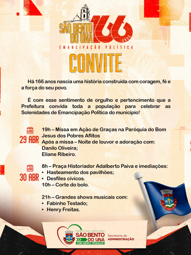 Valorizar a nossa terra também é celebrar quem canta, encanta e conta a nossa história. A 1ª Serenata do Vale do Una reuniu talentos da nossa gente e transformou as ruas de São Bento do Una em um verdadeiro palco […]