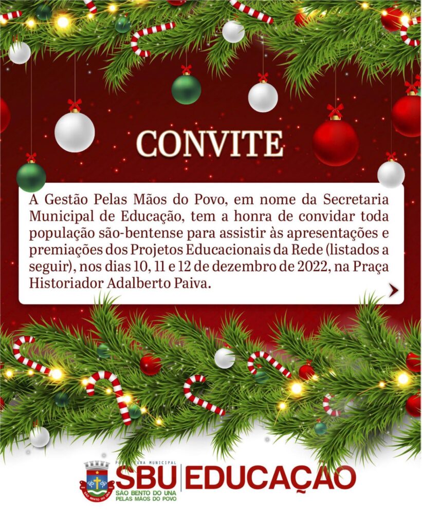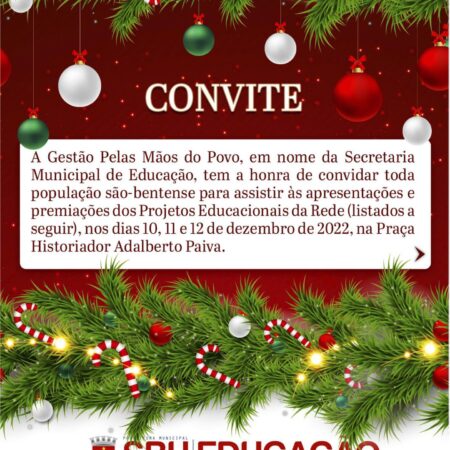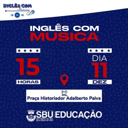 A Secretaria Municipal de Educação, em nome do PROJETO INGLÊS COM MÚSICA, convida todos vocês para soltarem a voz com os estudantes vencedores deste magnífico Projeto! Lúcio Luís Oliveira da Silva, Milena Santos Batista e Joyce Monteiro da Silva farão […]