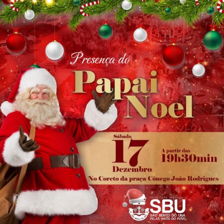 Atenção, famílias são-bentenses!!! O Papai Noel mandou avisar que está em nossa Cidade e que é pra todas as crianças irem visitá-lo, às 19h30min, no Coreto da Praça Cônego João Rodrigues, combinado?!Ho, ho, ho!!! #notíciassbu