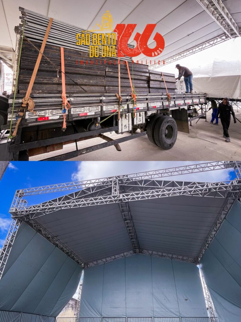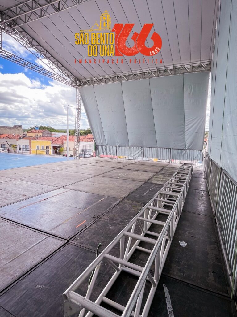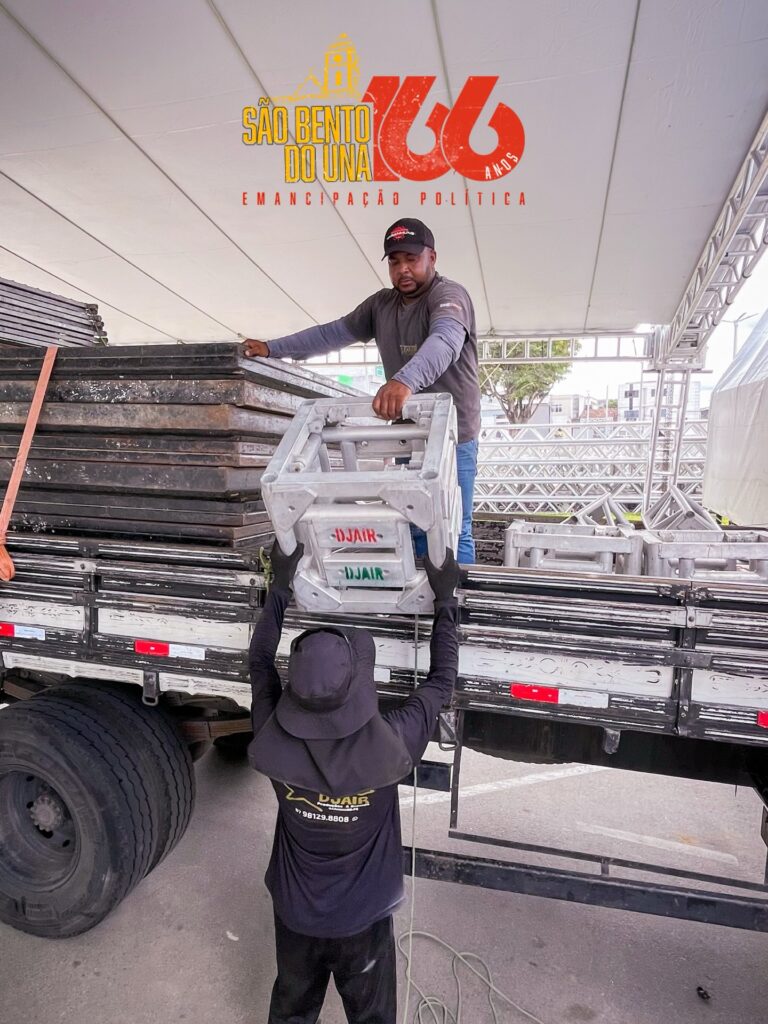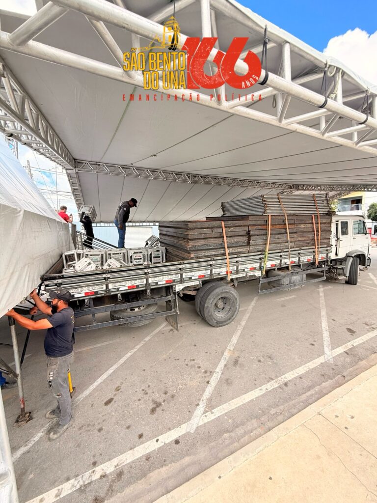 A cidade já começa a ganhar forma com uma grande estrutura sendo montada, enquanto nos bastidores uma equipe dedicada trabalha sem parar, cuidando de cada detalhe para entregar um evento à altura do nosso povo.