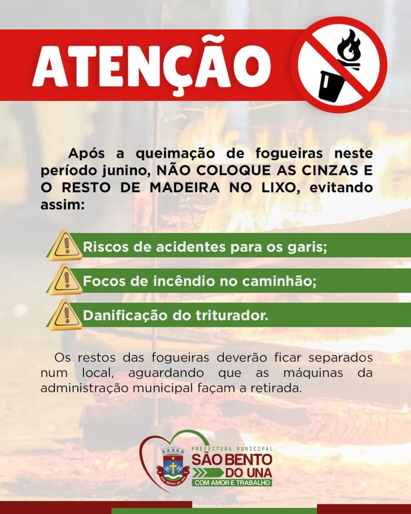 A Prefeitura de São Bento do Una, através da Secretaria de Infraestrutura, solicita à população que: