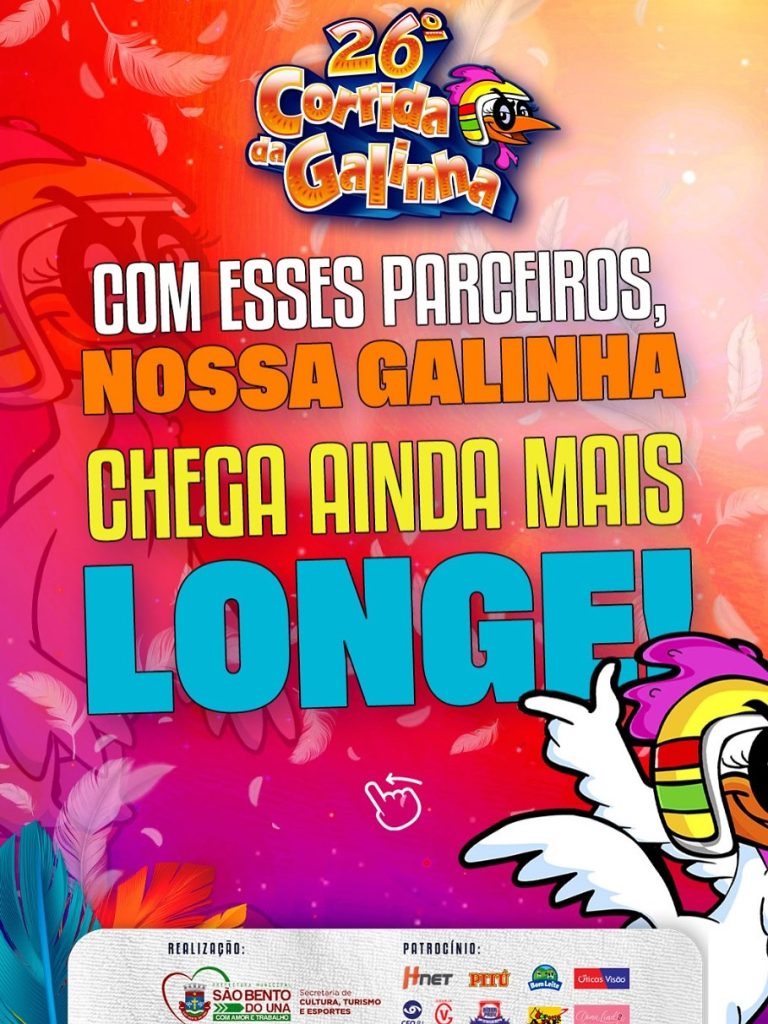 OLÁ, FOLIÃO!!! Conheça o time de parceiros que vai fazer a diferença na melhor e maior Corrida da Galinha de todos os tempos! Com essa parceria fundamental, nossa tradição se fortalecerá ainda mais! Arrasta pro lado!