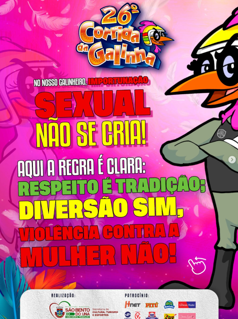 ⚠️🐔No “nosso galinheiro”, IMPORTUNAÇÃO SEXUAL NÃO SE CRIA! Aqui, a regra é clara: ❌🐔RESPEITO é tradição! DIVERSÃO SIM, IMPORTUNAÇÃO NÃO! 📞Quem precisar de ajuda ou quiser fazer uma denúncia relacionada, é só acessar os seguintes números: • Coordenadoria da Mulher:(81) […]