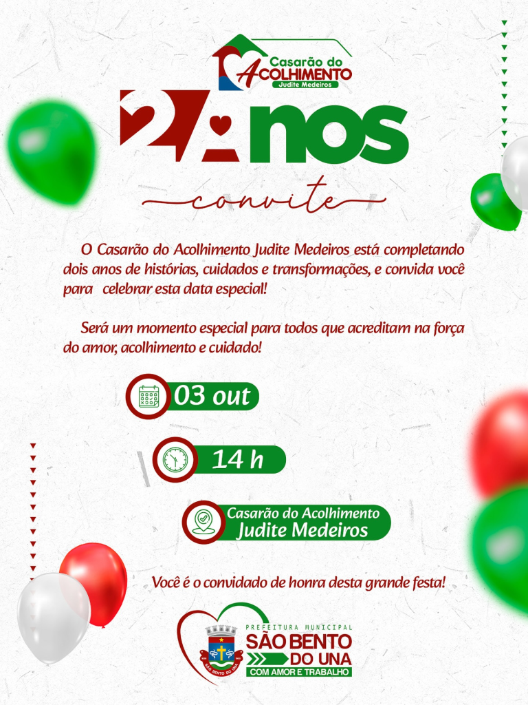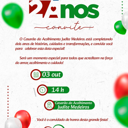 OLÁ, SEGUIDOR! O Casarão do Acolhimento Judite Medeiros está completando dois anos de histórias, cuidados e transformações, e convida você para celebrar esta data especial! Será um momento especial para todos que acreditam na força do amor, acolhimento e cuidado! […]