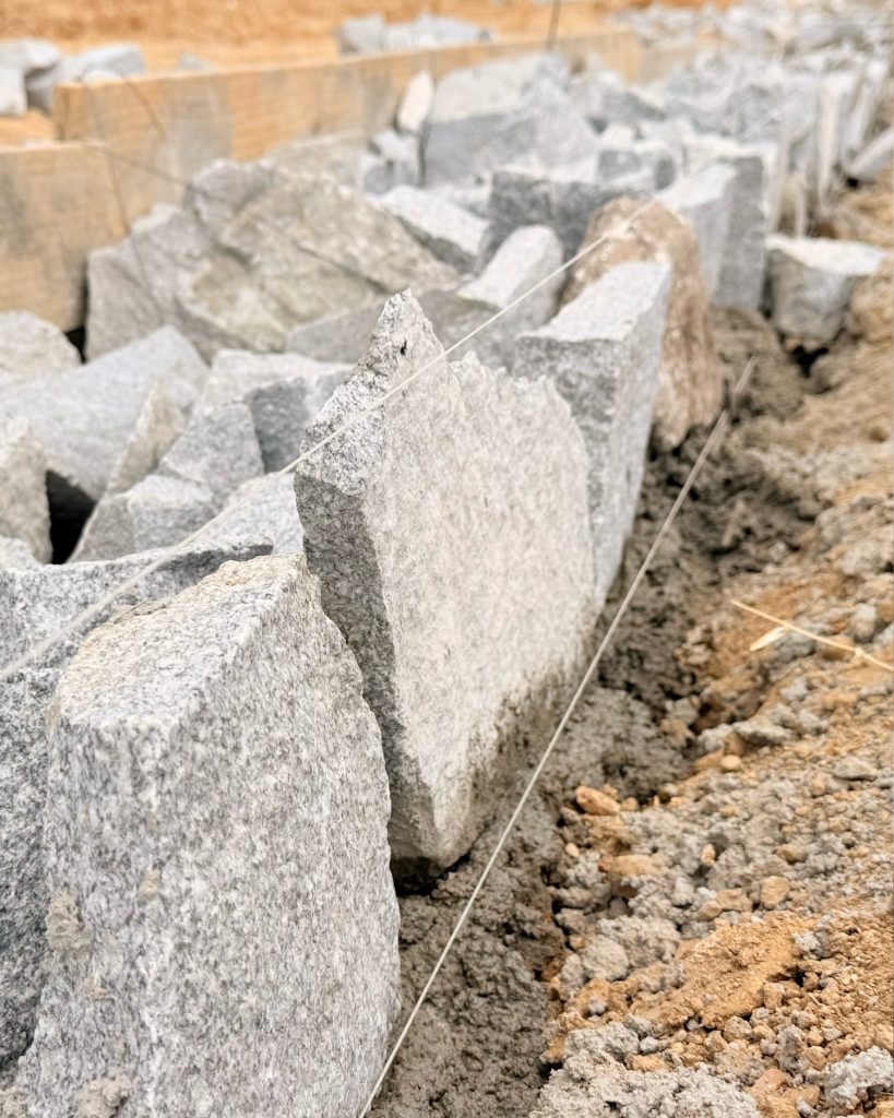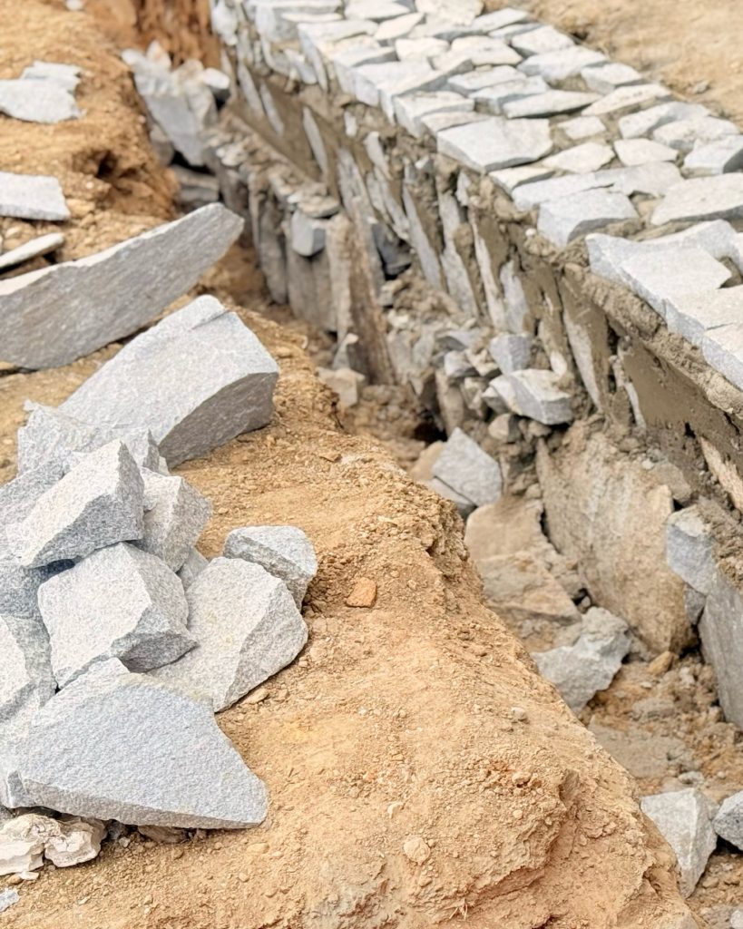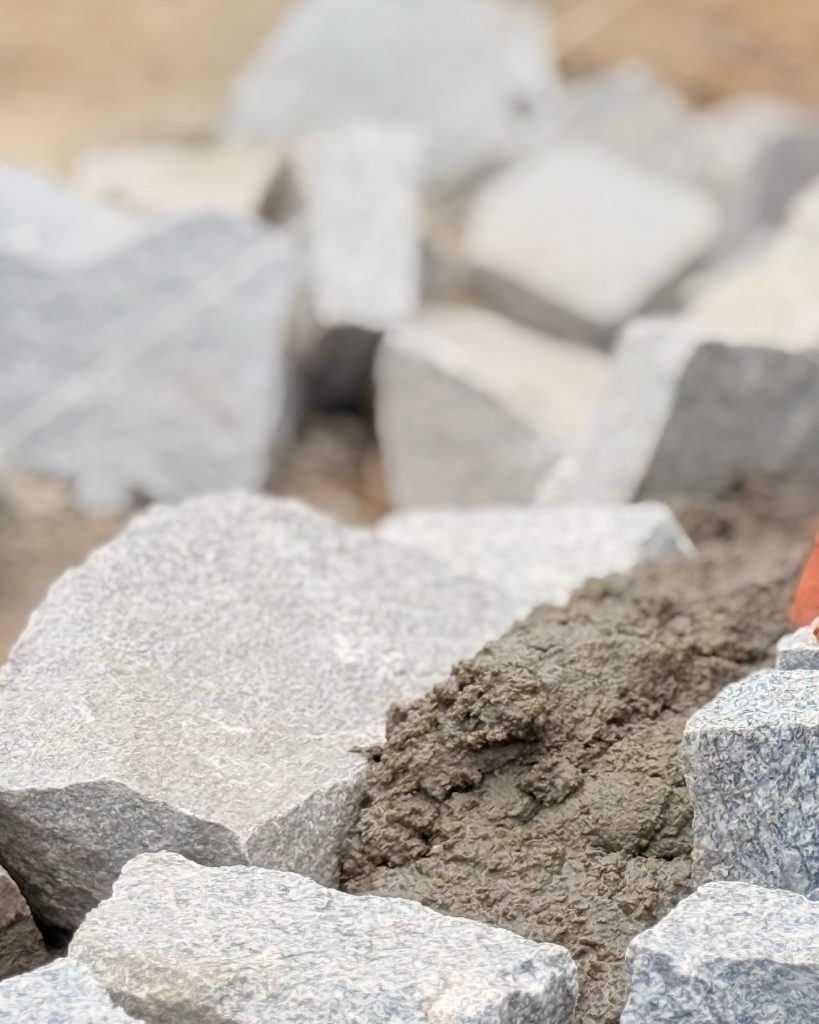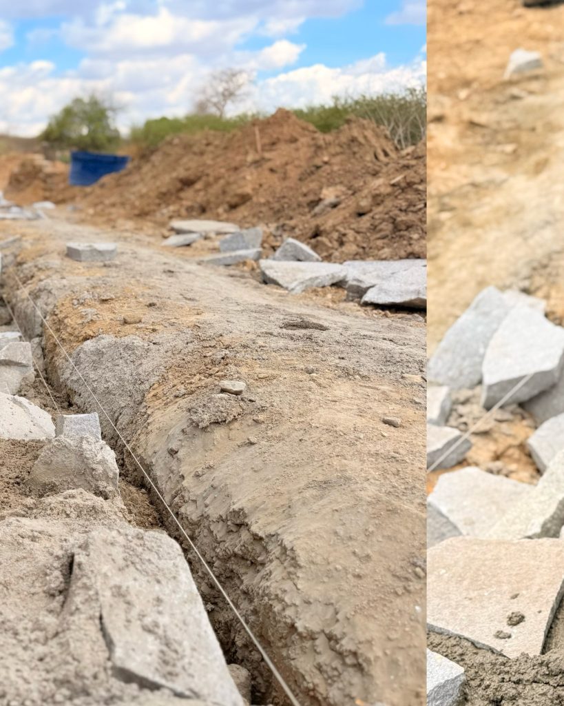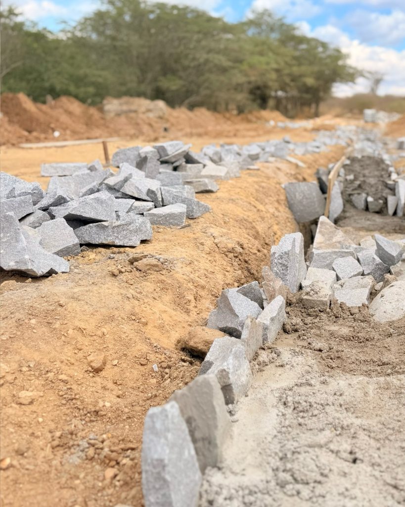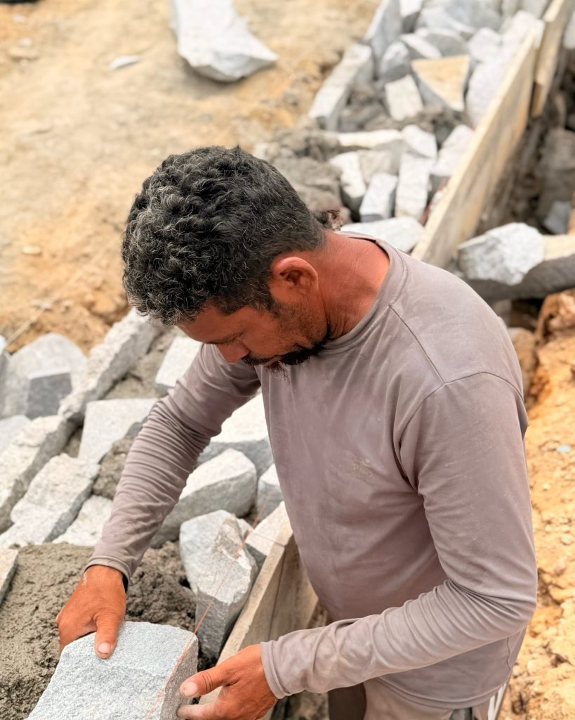É pedra por pedra, com calma, alinhamento e muito capricho. Não é só colocar pedra, não. É garantir firmeza, durabilidade e segurança pra quem vai passar por aqui todos os dias.