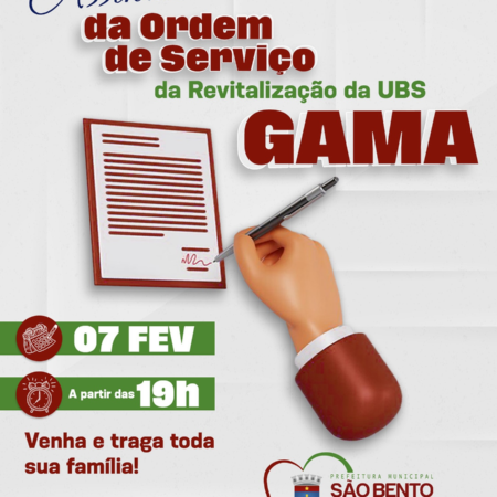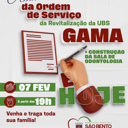 É com imensa alegria que todos nós que fazemos a Gestão Com Amor e Trabalho convidamos toda a população são-bentense para prestigiar a CERIMÔNIA DE ASSINATURA DA ORDEM DE SERVIÇO DA REVITALIZAÇÃO DA UBS DO POVOADO DO GAMA, HOJE ,DIA […]
