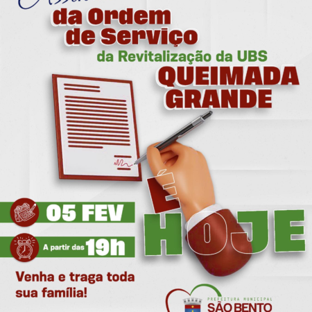 É com imensa alegria que todos nós que fazemos a Gestão Com Amor e Trabalho convidamos toda a população são-bentense para prestigiar a CERIMÔNIA DE ASSINATURA DA ORDEM DE SERVIÇO DA REVITALIZAÇÃO DA UBS DO POVOADO DE QUEIMADA GRANDE, HOJE, […]