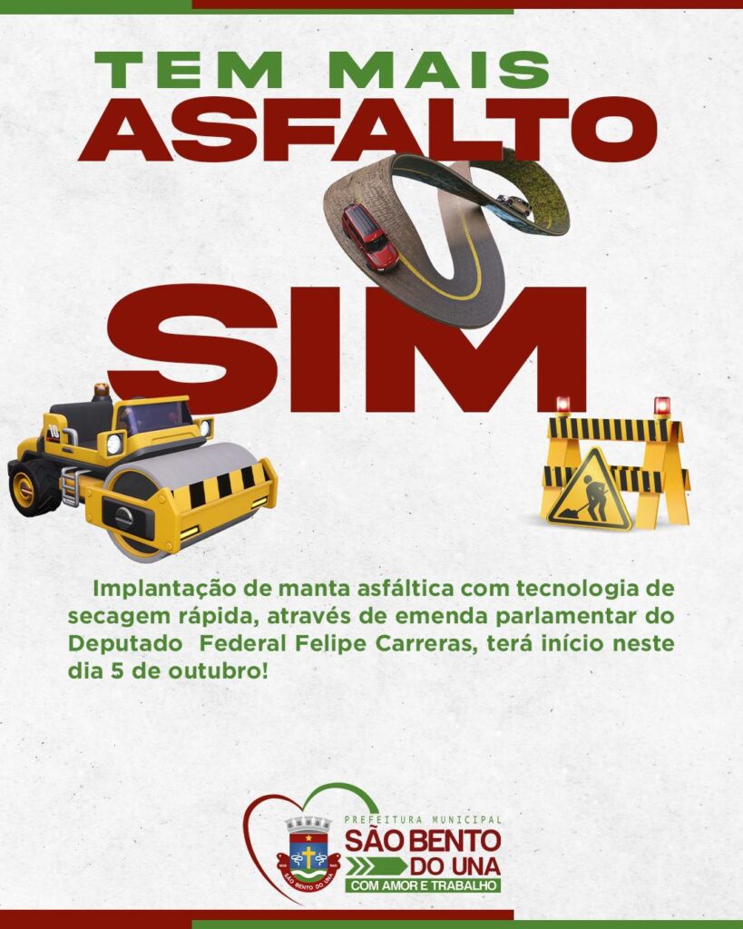 🚗O Governo Municipal retomou HOJE, dia 05 de outubro de 2023, uma ação muito esperada: ATRAVÉS DE UMA EMENDA PARLAMENTAR DO DEPUTADO FEDERAL FELIPE CARRERAS, será aplicada na nossa querida cidade MAIS UMA MANTA ASFÁLTICA! Com tecnologia de secagem imediata, […]