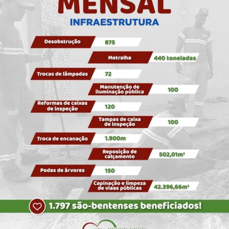 👉A Gestão Com Amor e Trabalho, por meio da Secretaria Municipal de Infraestrutura, vem a público prestar contas das ações realizadas em todo Município, durante o mês de SETEMBRO/2023. 🚜Confira no gráfico os trabalhos executados por essa turma que revoluciona […]