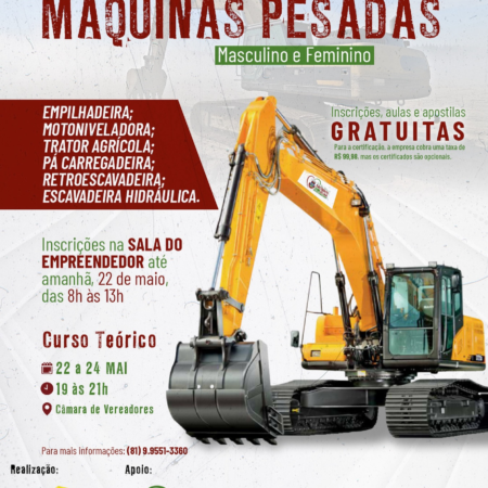 ATENÇÃO, ATENÇÃO, SÃO BENTO DO UNA E REGIÃO!!! Chegou uma grande oportunidade de formação e reciclagem nos CURSOS DE MAQUINAS PESADAS PARA HOMENS E MULHERES, resultado de uma parceria entre a “Qualifica Cursos” e a PREFEITURA DE SÃO BENTO DO […]