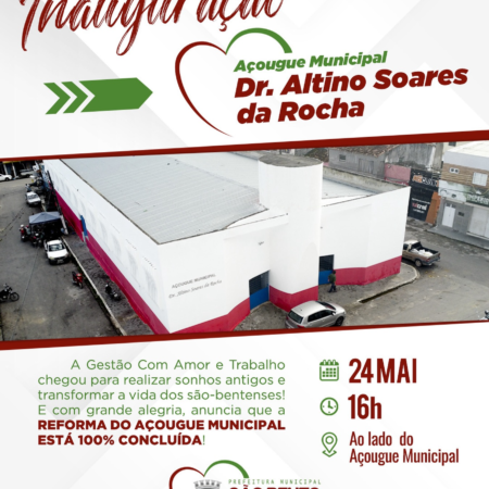 A Gestão Com Amor e Trabalho chegou para realizar sonhos antigos e transformar a vida dos são-bentenses! E com grande alegria, anuncia que a REFORMA DO AÇOUGUE MUNICIPAL ESTÁ 100% CONCLUÍDA! Na próxima SEXTA-FEIRA, dia 24/05, a partir das 16h, […]