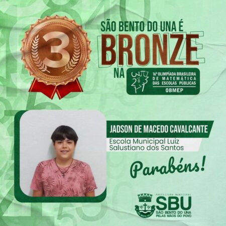 O estudante Jadson de Macedo Cavalcante, da Escola Municipal Luiz Salustiano dos Santos, localizada no Povoado da Pimenta, foi premiado com uma medalha de bronze na 16° Olimpíada Brasileira de Matemática das Escolas Públicas (OBMEP). Jadson foi o único aluno […]