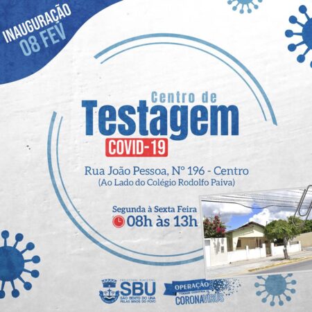 A Prefeitura Municipal, através da Secretaria de Saúde, informa à população que a partir de amanhã, 08 DE FEVEREIRO, será inaugurado o CENTRO DE TESTAGEM DO MUNICÍPIO, localizado na Rua João Pessoa, onde os testes serão realizados mediante agendamento, das […]