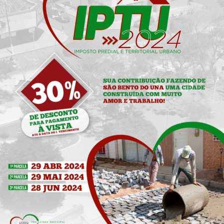 ALÔ, QUERIDO CONTRIBUINTE!!! Está chegando a hora de acertar o IPTU para que mais obras e serviços públicos possam beneficiar toda a população! Não perca tempo e contribua para a continuidade do desenvolvimento do nosso Município! E ATENÇÃO AOS PRAZOS […]