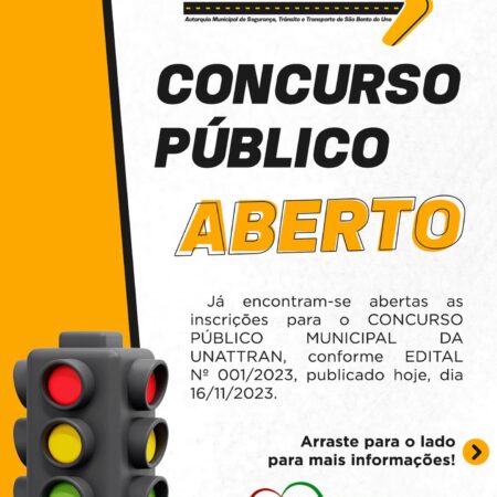 ATENÇÃO, MUITA ATENÇÃO PARA ESTE AVISO!!! Já encontram-se abertas as inscrições para o CONCURSO PÚBLICO MUNICIPAL DA UNATTRAN, que disponibilizará 43 VAGAS para 08 CARGOS PREVISTOS, conforme EDITAL Nº 001/2023, publicado hoje, dia 16/11/2023. Para mais informações, os interessados devem […]
