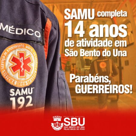 O Serviço de Atendimento Móvel de Urgência (SAMU) está comemorando 14 anos de atividade em São Bento do Una. A Prefeitura Municipal aproveita a oportunidade não só para parabenizar esses “anjos da guarda”, como também, para expressar toda gratidão a […]