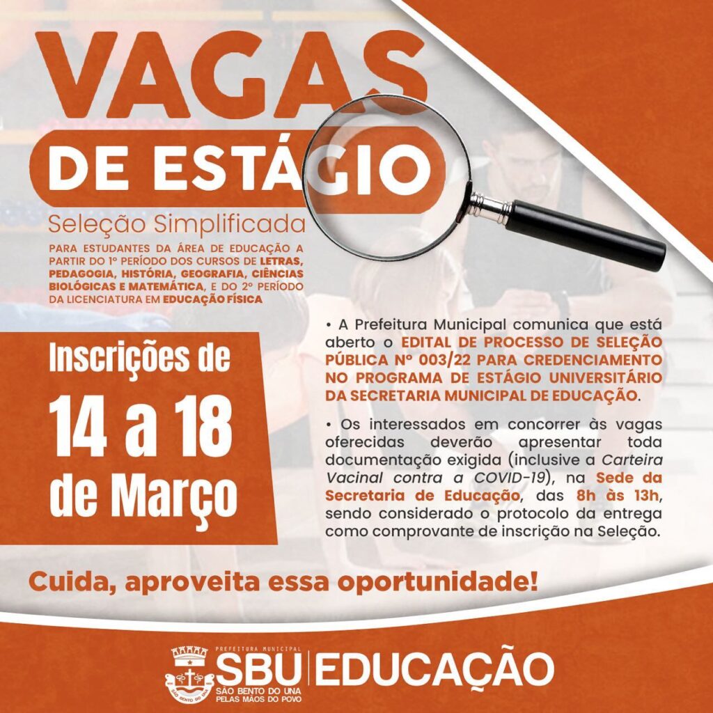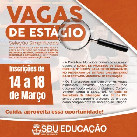 Atenção, Estudantes Universitários matriculados a partir do 1° PERÍODO DOS CURSOS DE LETRAS, PEDAGOGIA, HISTÓRIA, GEOGRAFIA, CIÊNCIAS BIOLÓGICAS E MATEMÁTICA, E DO 2° PERÍODO DE LICENCIATURA EM EDUCAÇÃO FÍSICA. A Prefeitura Municipal comunica que JÁ ESTÁ ABERTO O EDITAL DE […]