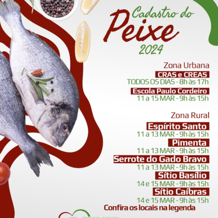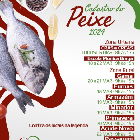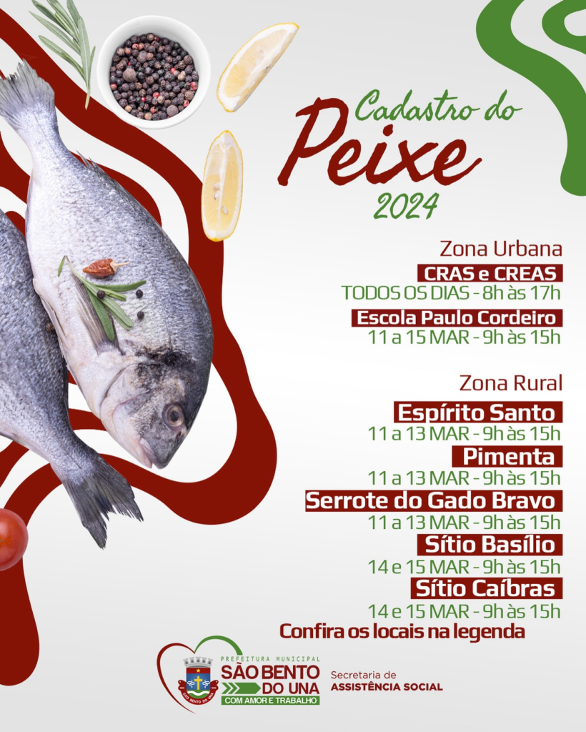 🔊ATENÇÃO, POPULAÇÃO!!! 🐠A Prefeitura de São Bento do Una, através da Secretaria de Assistência Social, informa que deu início hoje ao cadastramento para a realização da “ENTREGA DO PEIXE DA SEMANA SANTA”. ✅A ação visa à oferta de Segurança Alimentar […]