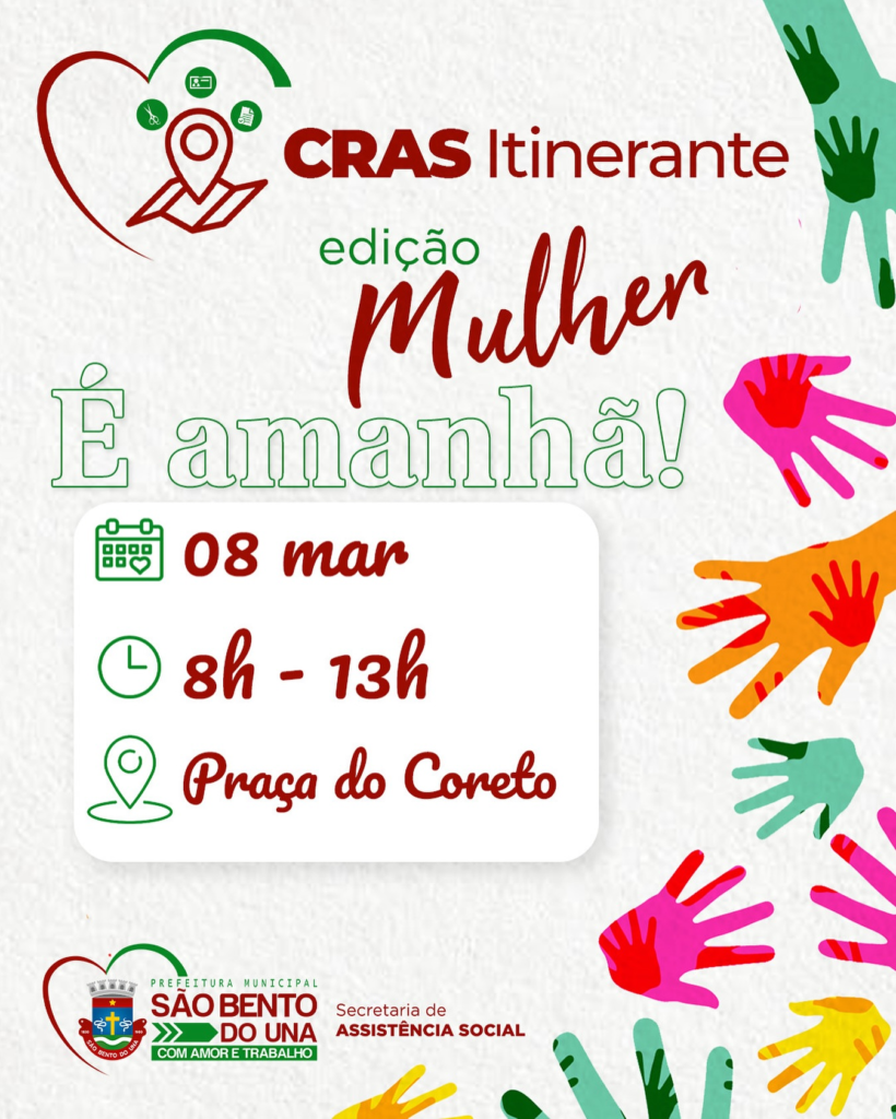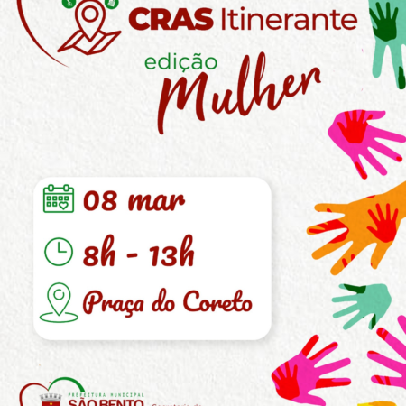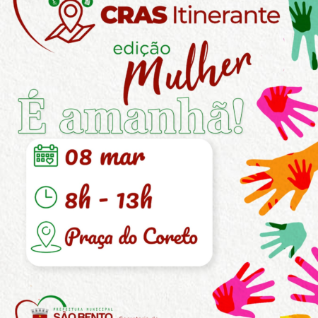 Em celebração ao “Dia Internacional da Mulher”, a Prefeitura de São Bento do Una, através da Secretaria Municipal de Assistência Social, promoverá o “CRAS ITINERANTE EDIÇÃO MULHER”. O evento será realizado na próxima SEXTA-FEIRA, DIA 08 DE MARÇO, das 8h […]