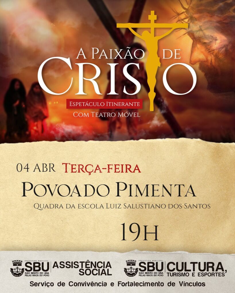 O espetáculo mais emocionante e significativo do ano está chegando e o Governo Municipal, através da Secretaria de Assistência Social, convida você para assistir ao “Teatro Itinerante da Paixão de Cristo”, que apresentará uma linda produção e um elenco talentoso. […]