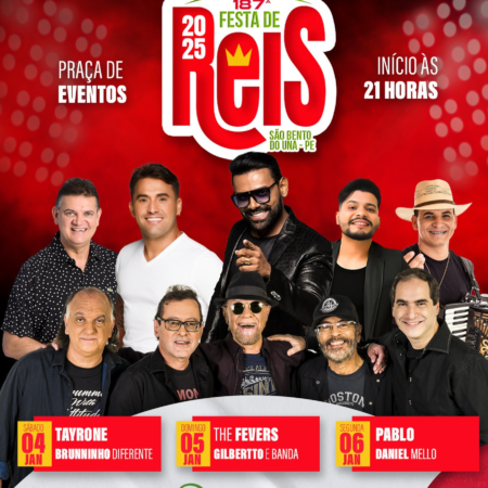 Atenção, atenção, povo querido! A Prefeitura de São Bento do Una, através da Secretaria de Cultura, promoverá um megaevento de música da melhor qualidade, cultura, diversão e muita alegria! Serão três noites inesquecíveis! Confira as atrações: Dia 4 de janeiro: […]