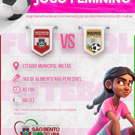 O Dia Internacional da Mulher será comemorado em nosso Município com as “donas da bola do futebol feminino” em campo… É isso mesmo, galera! O “Prefeitura Fem. Futebol Clube” e o “Margarida Futebol Clube” vão bater um bolão no ESTÁDIO […]
