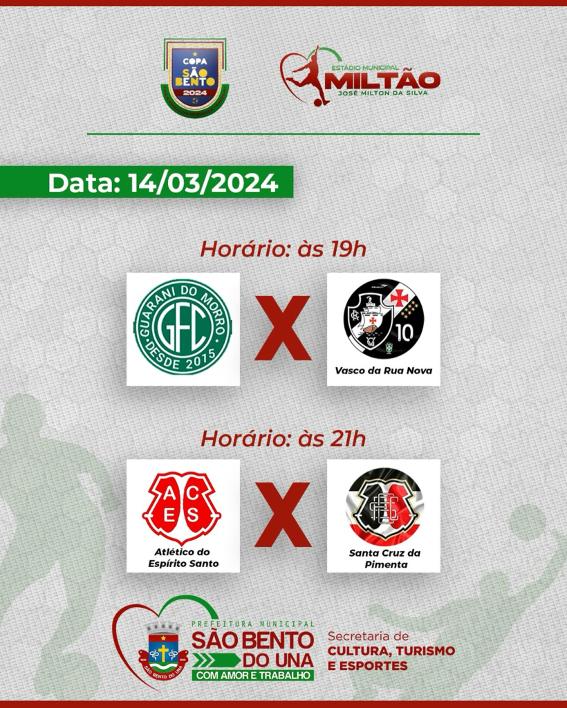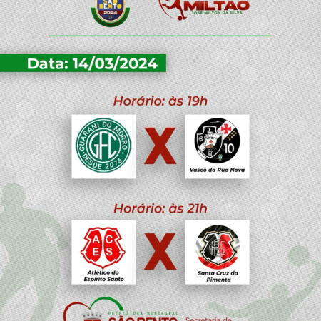 A COPA SÃO BENTO 2024 segue a todo vapor na noite de ontem foi realizada mais uma rodada de jogos no Estádio Municipal Miltão, envolvendo as seguintes equipes: *Guarani do Morro; *Vasco da Rua Nova; *Atlético do Espírito Santo; *Santa […]