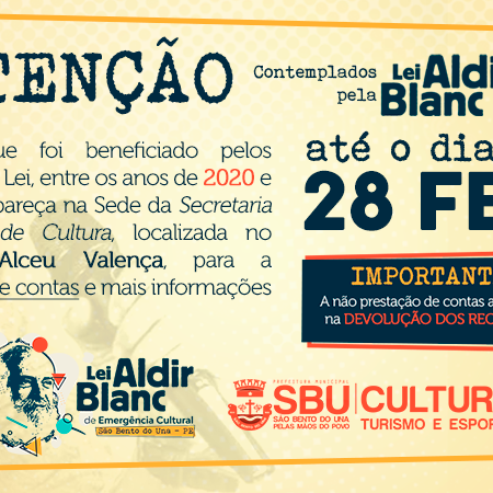 Vocês que foram beneficiados pelos recursos da Lei, entre os anos de 2020 e 2021, compareçam na Sede da Secretaria Municipal de Cultura, localizada no “Casarão Alceu Valença”, para prestação de contas e mais informações referentes. A Secretaria alerta que: […]