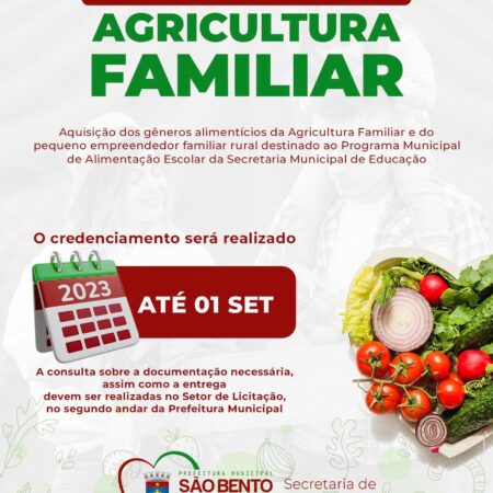 ATENÇÃO, AGRICULTOR!!! A Prefeitura de São Bento do Una está cadastrando aqueles que atuam na AGRICULTURA FAMILIAR: Programa que abastece, com alimentos naturais e saudáveis, a merenda escolar da Rede e gera renda para a agricultura do Município. Aproveite essa […]