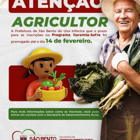 ATENÇÃO, POPULAÇÃO!!! A Prefeitura de São Bento do Una, através da Secretaria de Desenvolvimento Rural, informa que, devido ao feriado prolongado do Carnaval 2025, NÃO HAVERÁ RECEBIMENTO E ABATE DE ANIMAIS NA PRÓXIMA SEGUNDA-FEIRA (dia três de março). Confira a […]