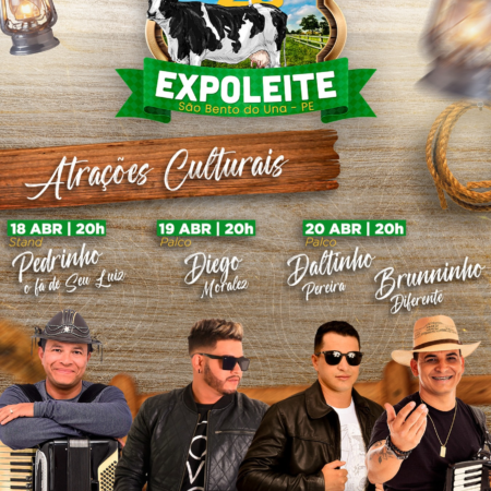 Vem aí mais uma EXPOLEITE! A 23ª Edição acontecerá de 18 a 20 DE ABRIL, no PARQUE DE EXPOSIÇÕES ELÁDIO PORFÍRIO DE MACEDO, e contará com a seguinte programação musical: Dia 18/04- PEDRINHO DO ACORDEON; Dia 19/04- DIEGO MORALEZ; Dia […]