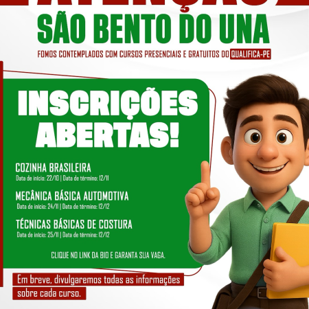 ATENÇÃO, POPULAÇÃO!!! Vem aí o QUALIFICA PE, com três grandes oportunidades de capacitações totalmente gratuitas! COZINHA BRASILEIRA: 22/10 a 12/11/2025. 13h às 17h. MECÂNICA BÁSICA AUTOMOTIVA: 24/11 a 12/12/2025. 18h às 22h. TÉCNICAS BÁSICAS DE COSTURA: 25/11 a 12/12/2025. 8h […]