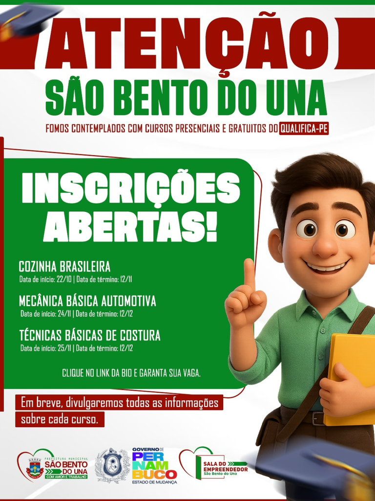 Uma oportunidade especial para quem quer aprimorar seus talentos na culinária e abrir novos caminhos profissionais! Local: Cozinha Comunitária – Rua Vavá Moraes, 160, Centro SBU. Horário: 13h às 17h. As inscrições estão encerradas! A Prefeitura de São Bento do […]