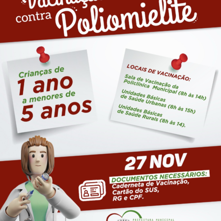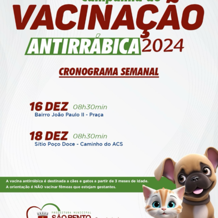 Atenção, população!!! A Prefeitura de São Bento do Una, através da Secretaria de Saúde, convida todas as crianças de 1 ano a menores de 5 anos (4 anos, 11 meses e 29 dias) para participarem da campanha de reforço da […]