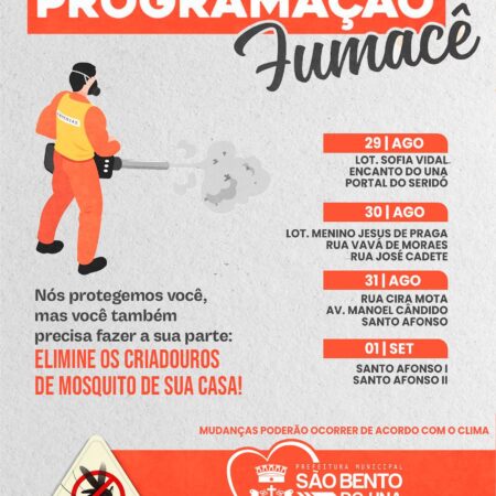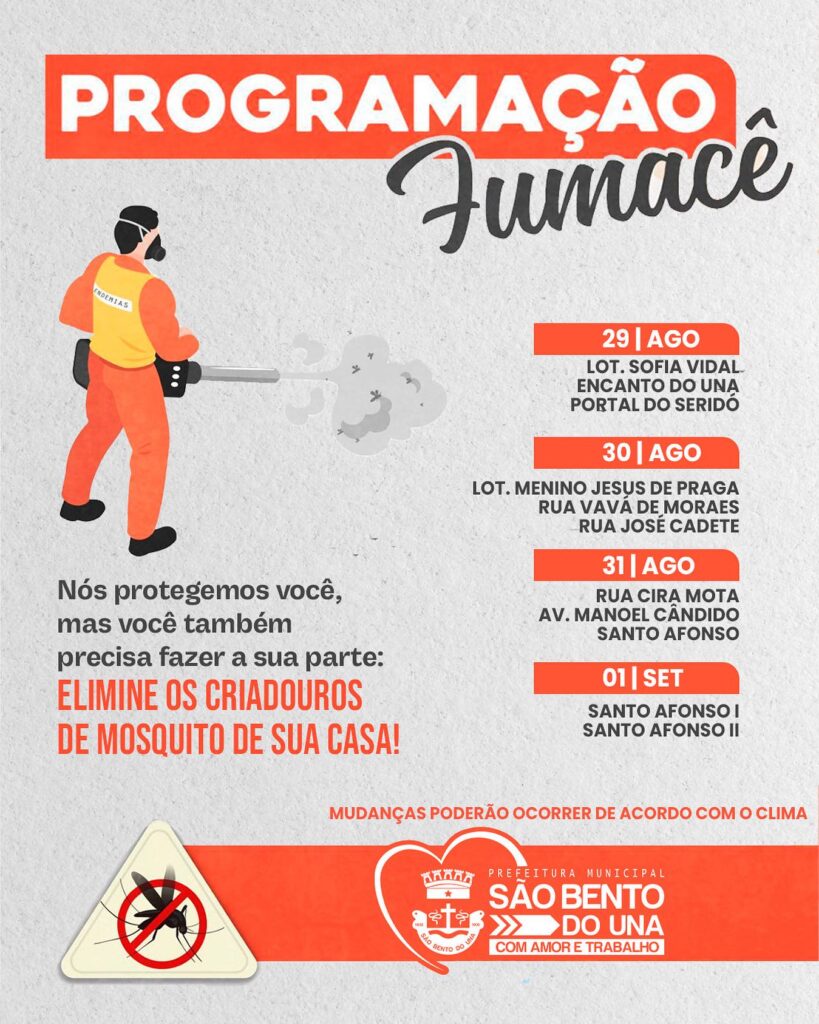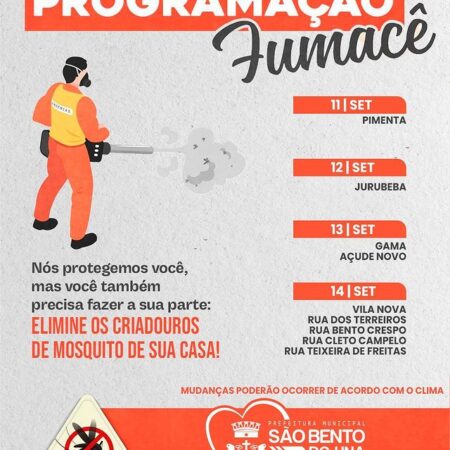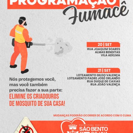 👉👉A Prefeitura de São Bento do Una, através da Secretaria de Saúde, informa o cronograma de ação do FUMACÊ no Município- 20 e 21/09. 💪O trabalho na luta contra o mosquito da Dengue não pode parar! É importante todos fazerem […]