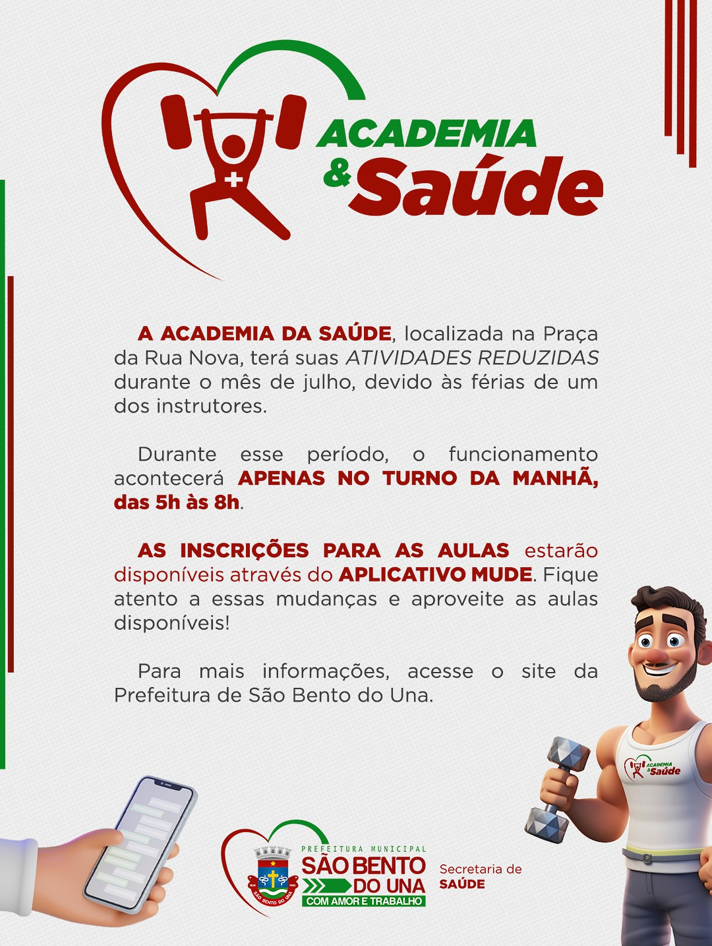 ATENÇÃO, POPULAÇÃO!!! A ACADEMIA DA SAÚDE, localizada na Praça da Rua Nova, terá suas ATIVIDADES REDUZIDAS durante o mês de julho, devido às férias de um dos instrutores. Durante esse período, o funcionamento acontecerá APENAS NO TURNO DA MANHÃ, das […]
