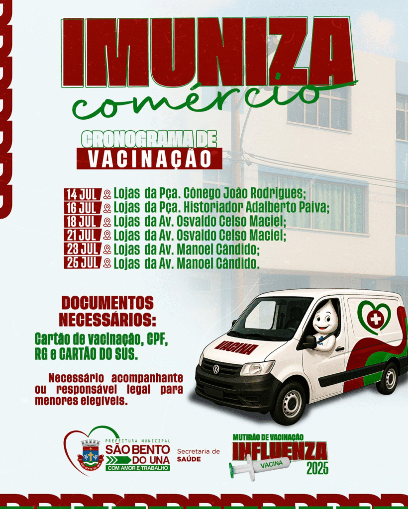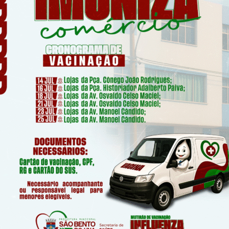 ATENÇÃO, POPULAÇÃO!!! A Prefeitura de São Bento do Una, através da Secretaria de Saúde, está levando a VACINAÇÃO CONTRA A INFLUENZA até os ESTABELECIMENTOS COMERCIAIS locais! DE 14 A 25 DE JULHO, a equipe de Enfermagem da referida Secretaria estará […]