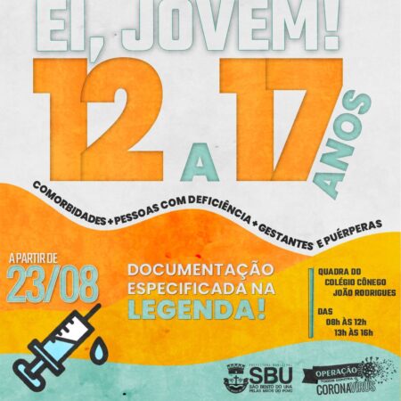 A Secretaria Municipal de Saúde, através do PNI local, comunica a ampliação da vacinação contra a Covid-19, a partir de amanhã, dia 23/08, envolvendo os seguintes grupos: adolescentes com comorbidades, pessoas com deficiência permanente e gestantes e puérperas, todos na […]