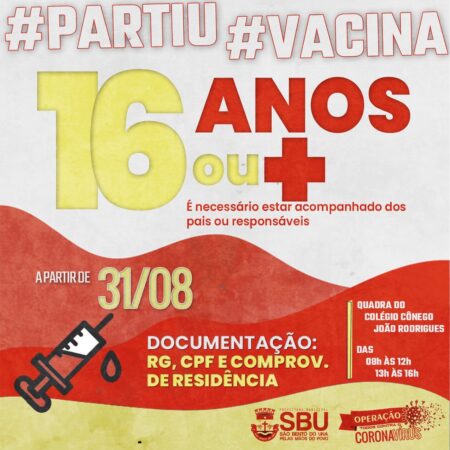 Então, prepara o bracinho e #partiu! Amanhã, dia 31 de agosto, a Secretaria Municipal de Saúde dará início ao tão esperado processo de vacinação das pessoas com anos ou mais! Vamos nocautear o vírus! Compareça, levando RG, CPF, comprovante de residência […]