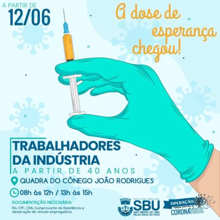 Está chegando a vez da imunização do Trabalhador da Indústria e Construção Civil, das Indústrias e Construtoras localizadas no Município de São Bento do Una – PE.Início: 12 e 13/06, respectivamente. *Trabalhadores Industriais, a partir de 40 anos de idade:-Documentos […]
