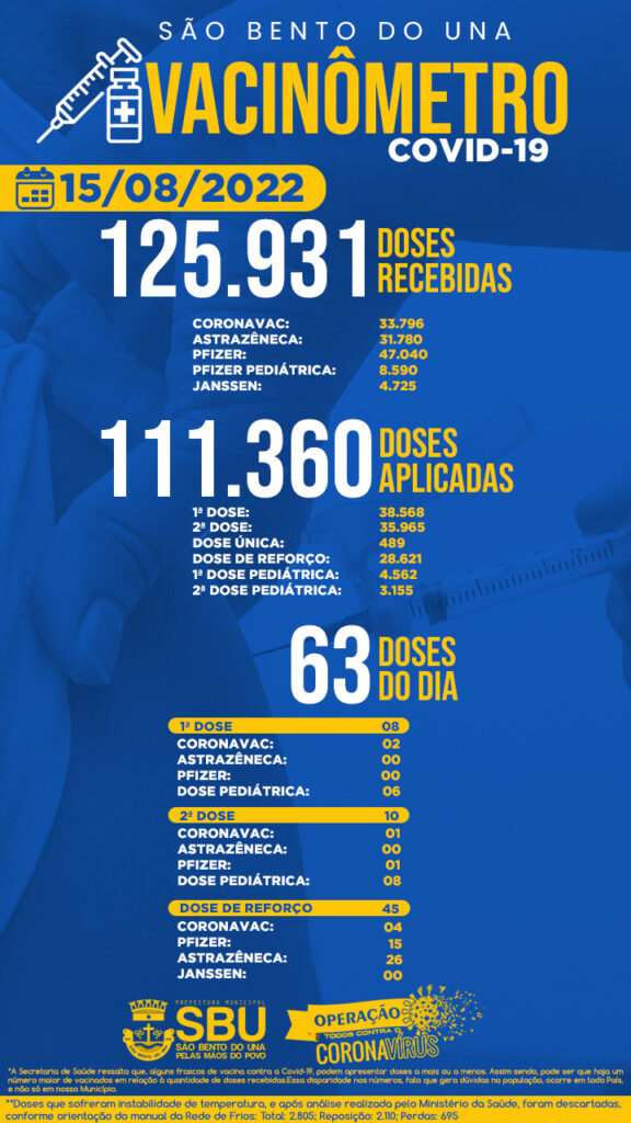 15 de agosto de 2022Publicado por ASCOM - SBU em 15 de agosto de 2022Categorias Boletim de VacinaçãoBoletim de Vacinação 15/08/2022