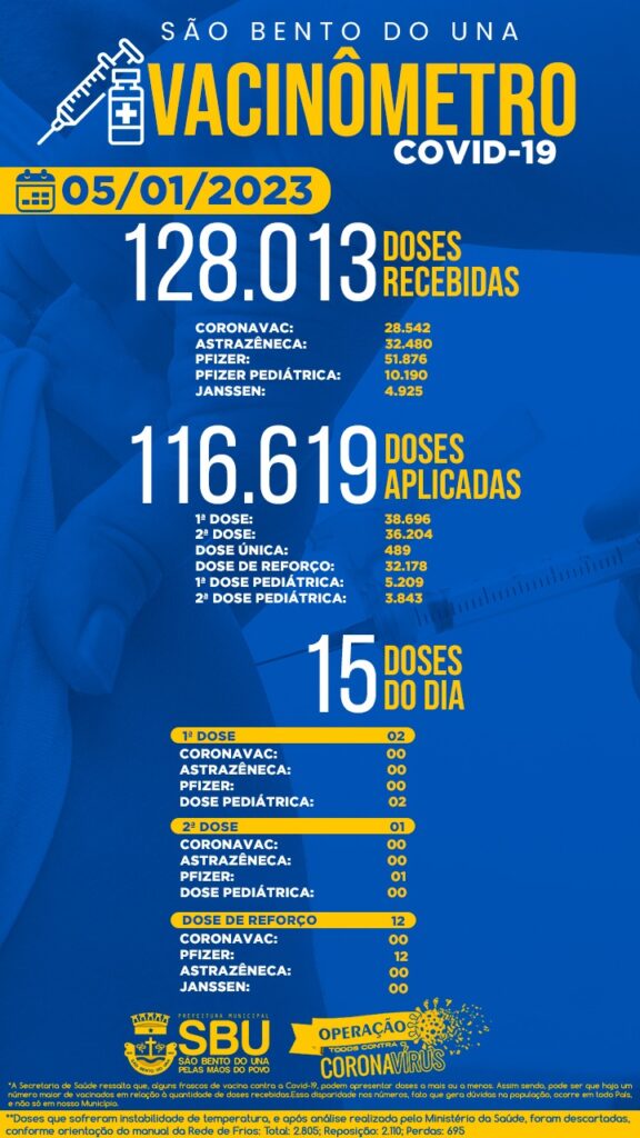 5 de janeiro de 2023Publicado por ASCOM - SBU em 5 de janeiro de 2023Categorias Boletim de VacinaçãoBoletim de Vacinação 05/01/2023