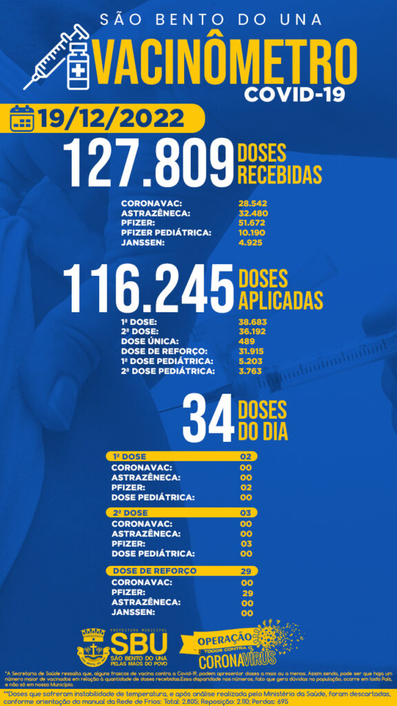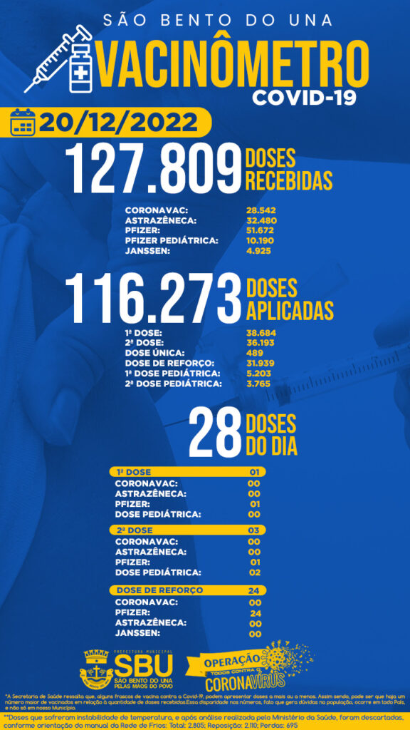 22 de dezembro de 2022Publicado por ASCOM - SBU em 22 de dezembro de 2022Categorias Boletim de VacinaçãoBoletim de Vacinação 22/12/2022