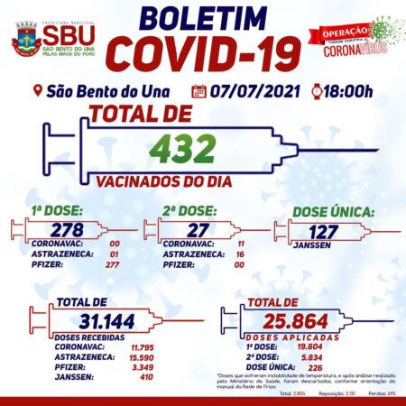 7 de julho de 2021Publicado por ASCOM - SBU em 7 de julho de 2021Categorias Boletim de VacinaçãoBoletim de Vacinação 07/07/2021