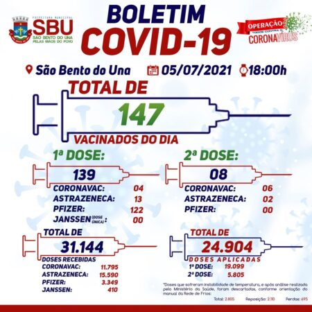5 de julho de 2021Publicado por ASCOM - SBU em 5 de julho de 2021Categorias Boletim de VacinaçãoBoletim de Vacinação 05/07/2021