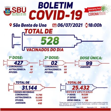 6 de julho de 2021Publicado por ASCOM - SBU em 6 de julho de 2021Categorias Boletim de VacinaçãoBoletim de Vacinação 06/07/2021