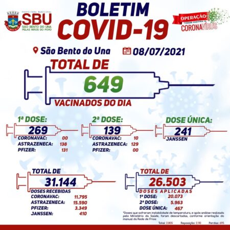 8 de julho de 2021Publicado por ASCOM - SBU em 8 de julho de 2021Categorias Boletim de VacinaçãoBoletim de Vacinação 08/07/2021