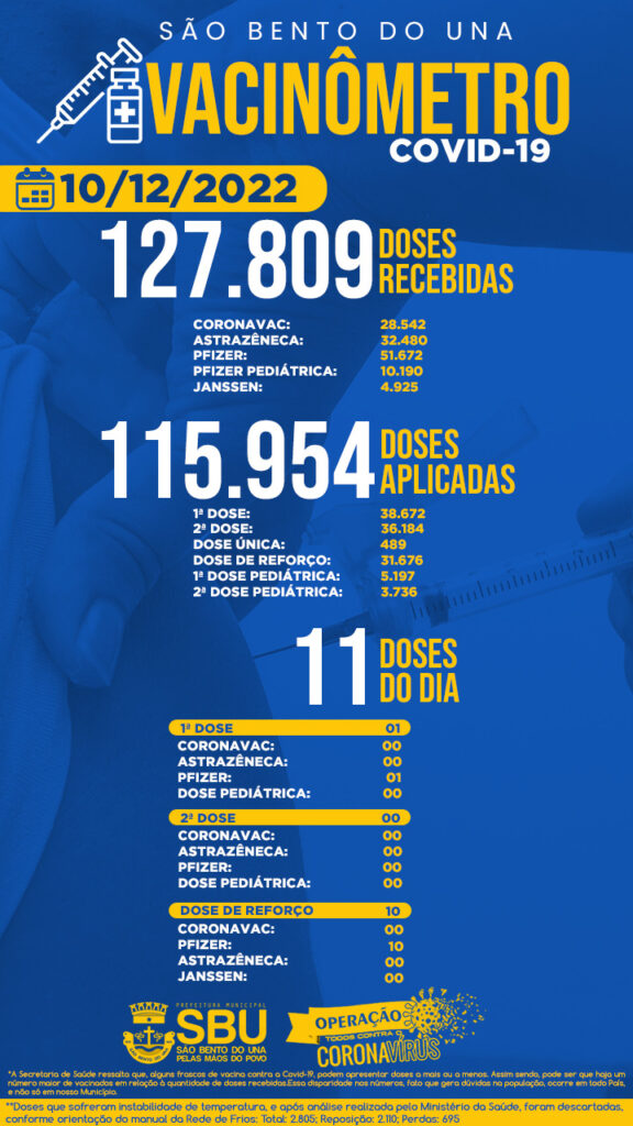 12 de dezembro de 2022Publicado por ASCOM - SBU em 12 de dezembro de 2022Categorias Boletim de VacinaçãoBoletim de Vacinação 12/12/2022