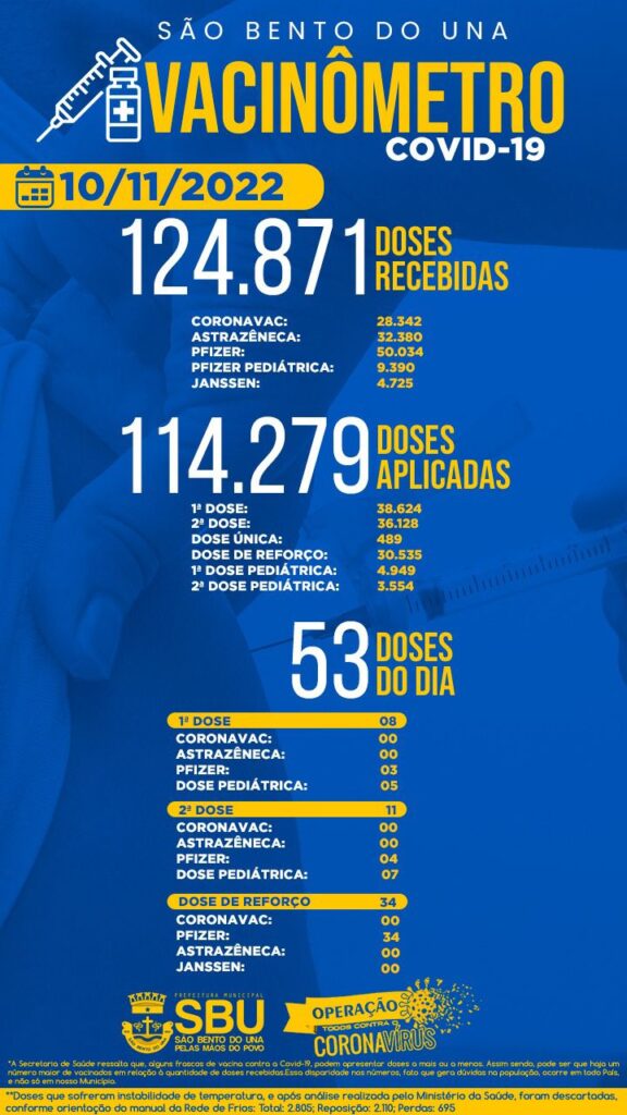 12 de novembro de 2022Publicado por ASCOM - SBU em 12 de novembro de 2022Categorias Boletim de VacinaçãoBoletim de Vacinação 12/11/2022