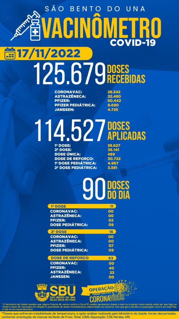 17 de novembro de 2022Publicado por ASCOM - SBU em 17 de novembro de 2022Categorias Boletim de VacinaçãoBoletim de Vacinação 17/11/2022